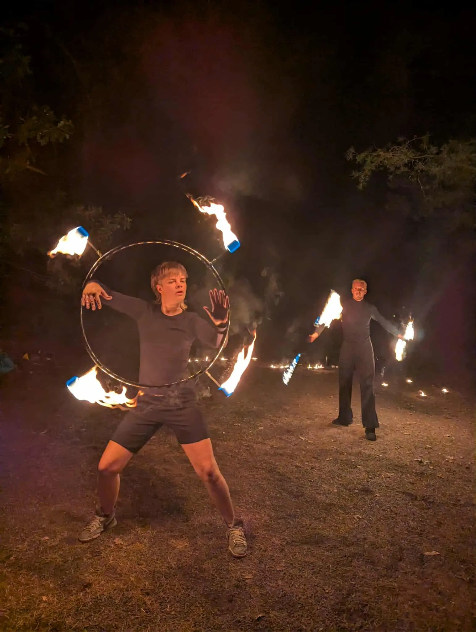 Det var på cirkuslägret Våreld 2024 som vi lärde känna varandra och upptäckte att vi båda leker med eld. Senare den sommaren fick Elin ett eldgig med sin bror utanför Göteborg där Lukas bodde. Han tackade direkt ja när frågan kom om han ville haka på. Detta var första showen och workshop vi tillsammans gjorde. Detta ville vi göra mer. Ett år senare har vi en djup kärlek till varandra och att uppträda tillsammans med eld och dans!